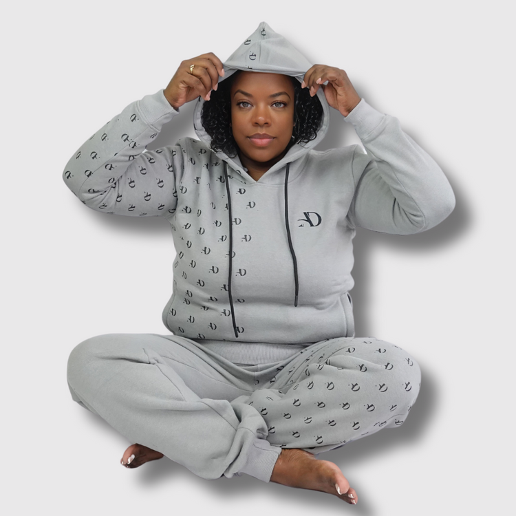 Elevate your loungewear game with the August Dynasty Limited Edition Monogram Grey Sweatsuit, designed for the modern woman who values both luxury and comfort. Crafted from premium, soft-touch fabric, this women's designer grey sweatsuit features the exclusive AD monogram pattern throughout, making it a standout piece in any wardrobe. Whether you're relaxing at home or stepping out, this limited edition set offers the perfect blend of fashion and functionality.